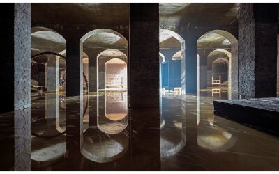 Cisternerne er et tidligere vandreservoir og derfor et perfekt sted til publikum oplever udstillingen fra en båd.